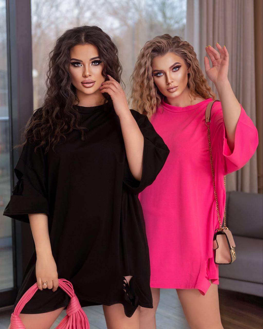 Опис: сукня футболка широкого крою. Знизу біля подолу та на рукаві розрізи.