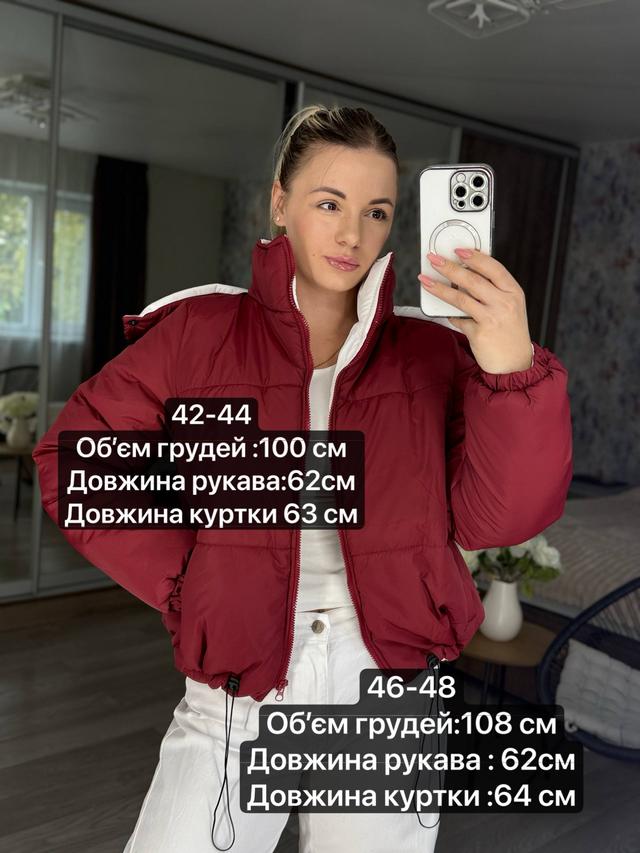 Куртка з якісним щільним наповнювачем, оснащена двома функціональними кишенями, капюшоном, кулісами та якісною фурнітурою. Щільна підкладка яка забезпечує комфорт та тепло.